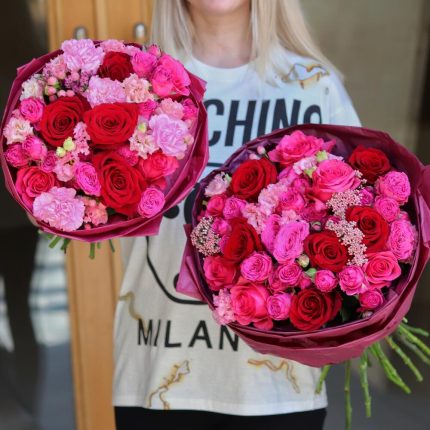 Большой букет с французскими розами, пион кустовой розой и гортензией