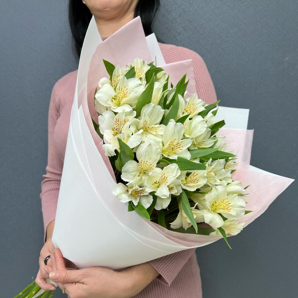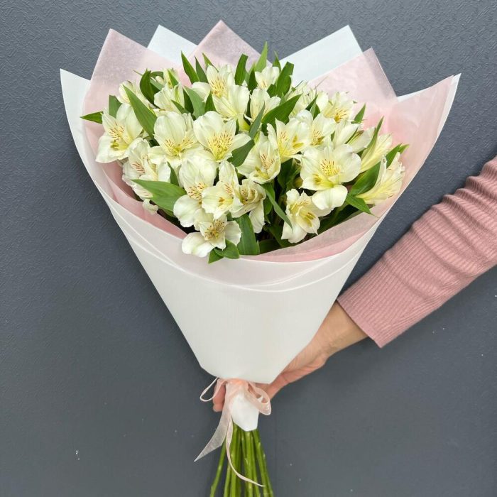 Альстромерия – 15 шт.Тишью – 1 шт.структурированны фаомиран – 1 шт.Лента – 1 шт.