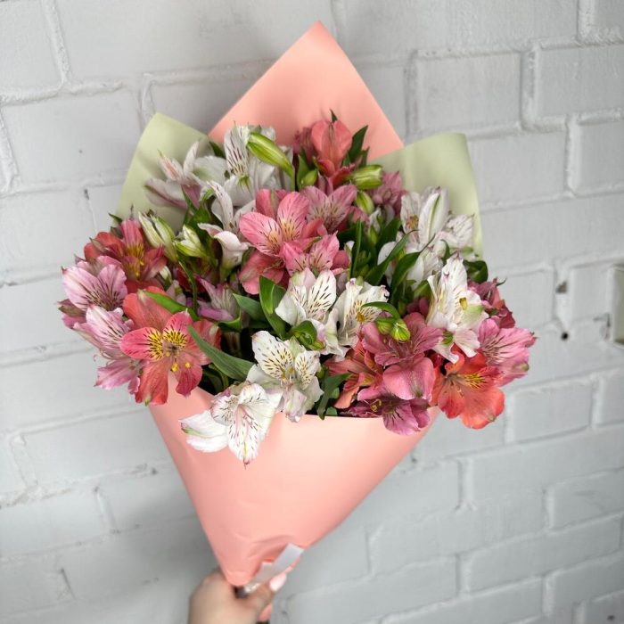 Монобукет из розовой и белой Альстромерии