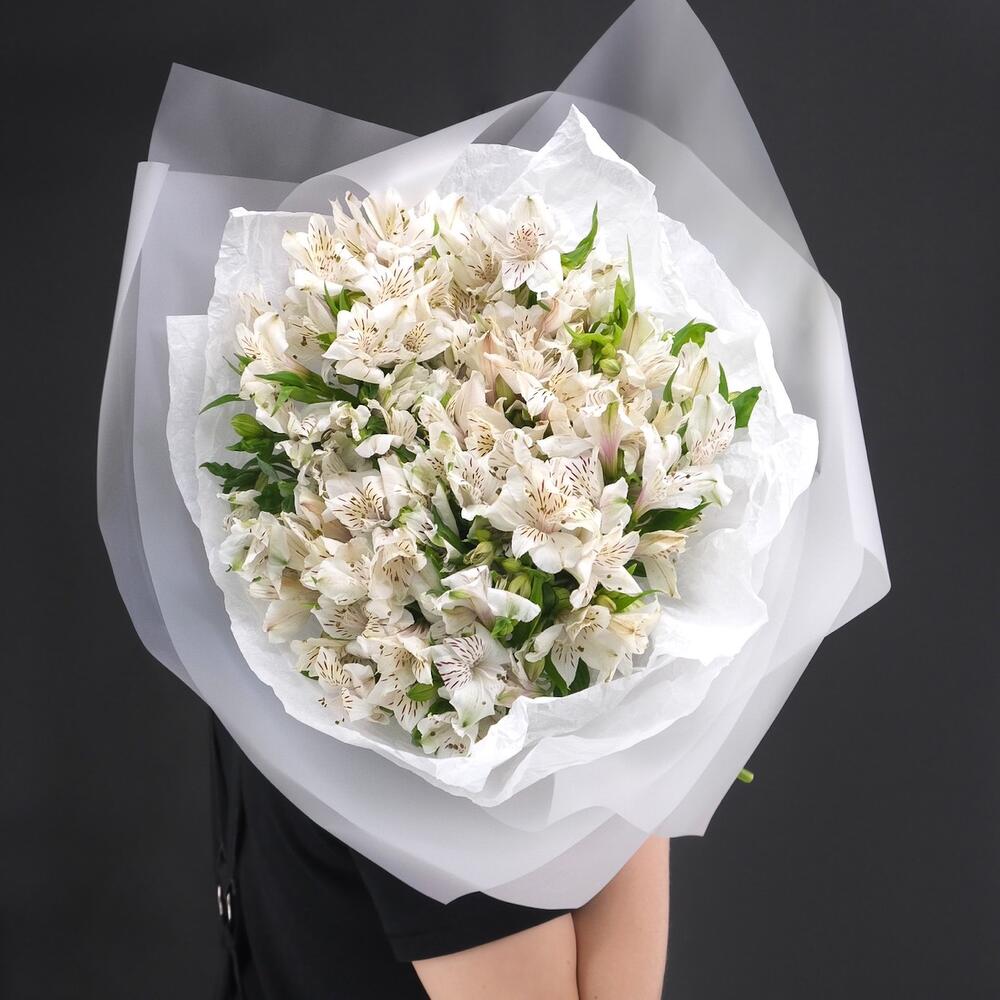 Альстромерия – 21 шт.подкормка для срезанных цветов – 1 шт.инструкция по уходу за цветами – 1 шт.упаковка (тишью и матовая пленка) – 1 шт.