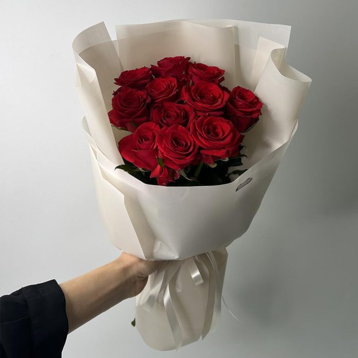 Класичний монобукет з 11 червоних троянд