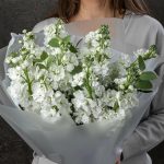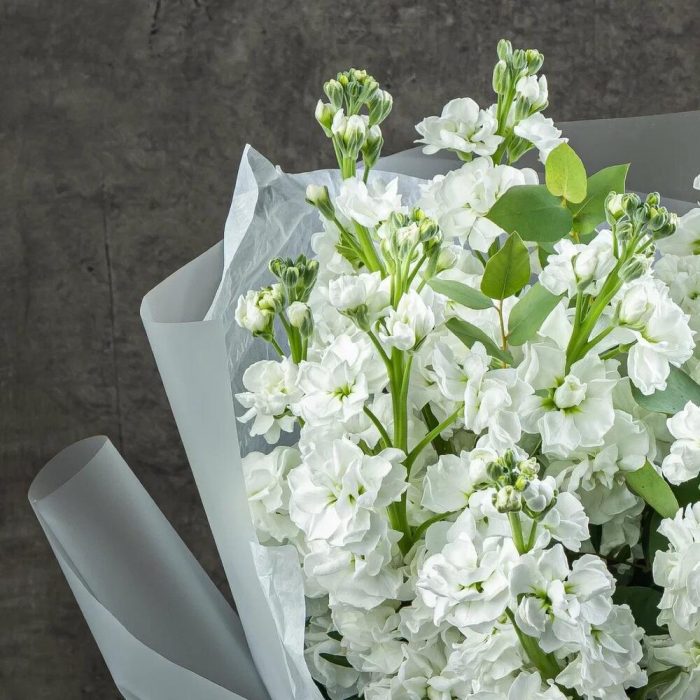 Букет из белой маттиолы и эвкалипта