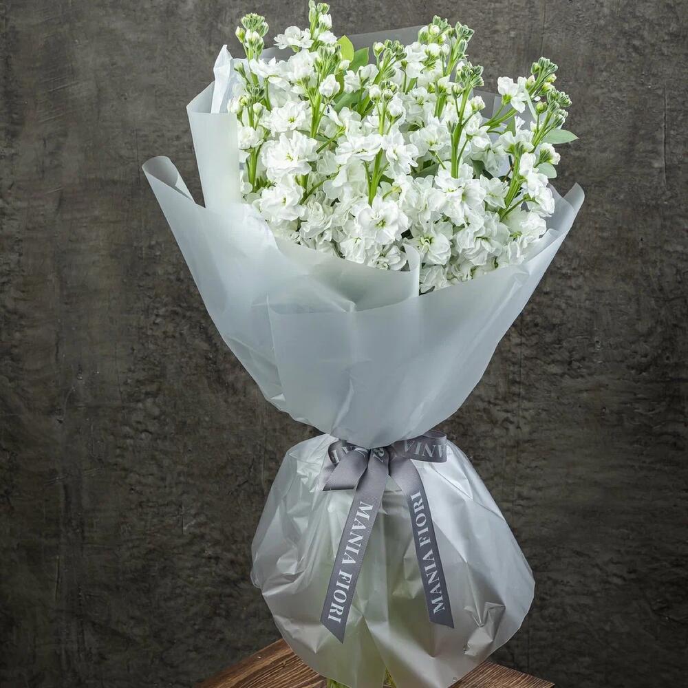 Маттиола – 11 шт.Эвкалипт – 1 шт.Подарочная упаковка – 1 шт.Средство продления жизни цветка – 1 шт.