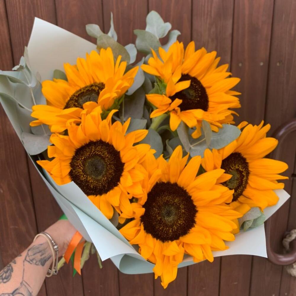 Букет из подсолнухов и эвкалипта “Онис”