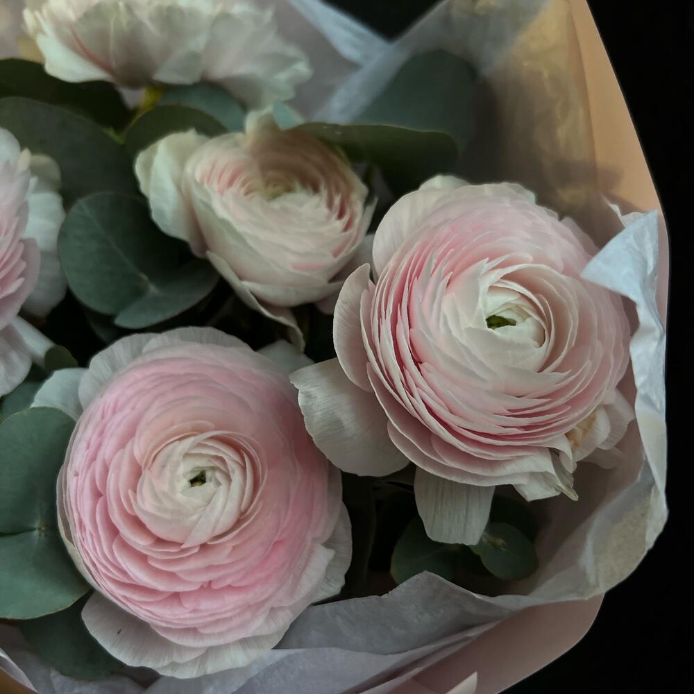 Букет с ранункулюсами и эвкалиптом