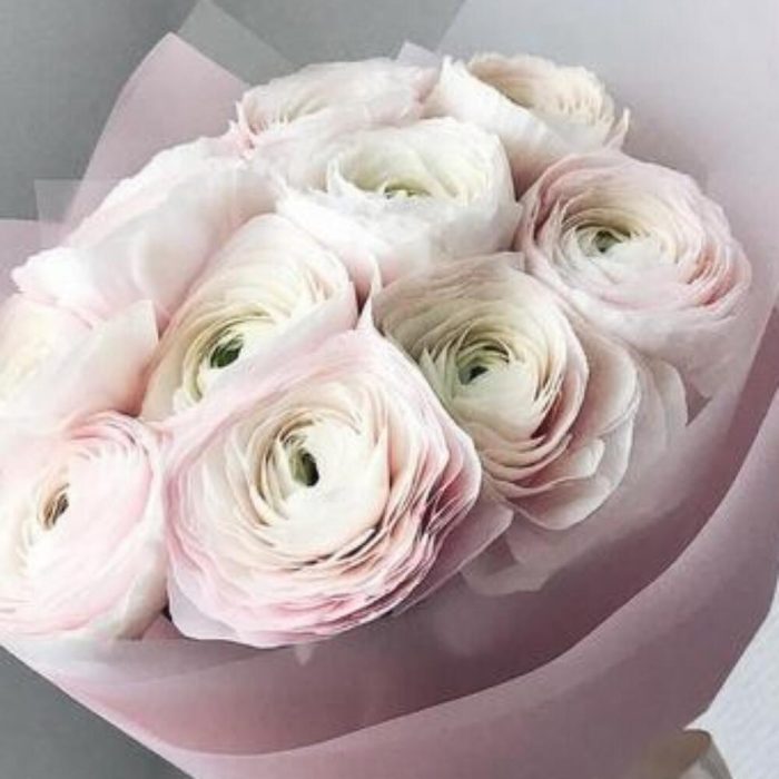 Ранункулюс (белый) – 11 шт.Дизайнерская упаковка – 2 шт.Лента атласная – 1 шт.
