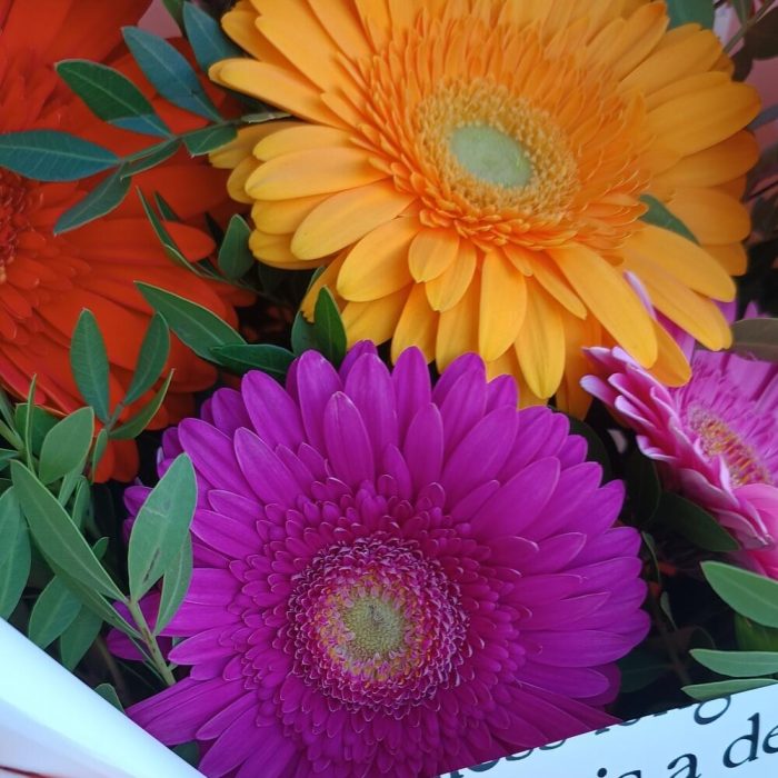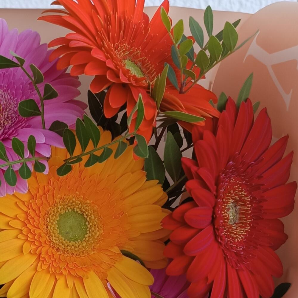 Весёлый микс ярких гербер подарит прекрасное настроение и море позитивных эмоций