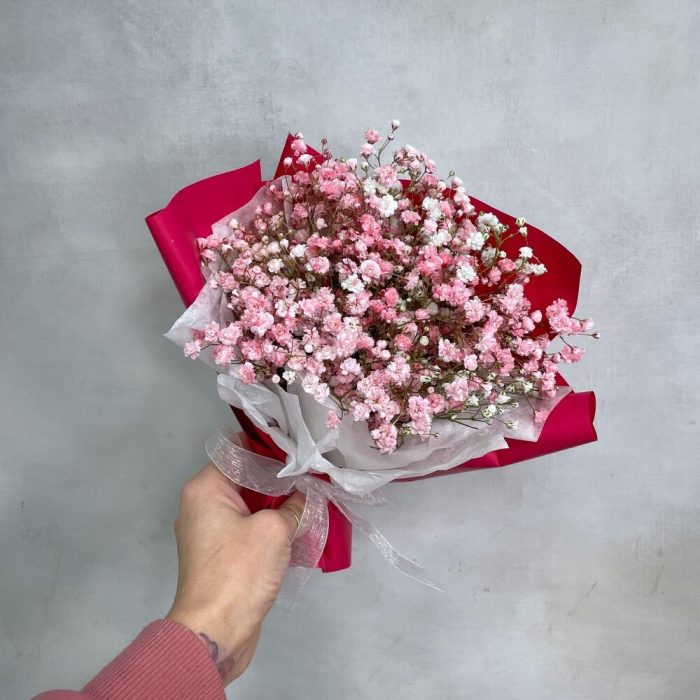 Авторский букет из 11 веточек гипсофилы с орхидеей