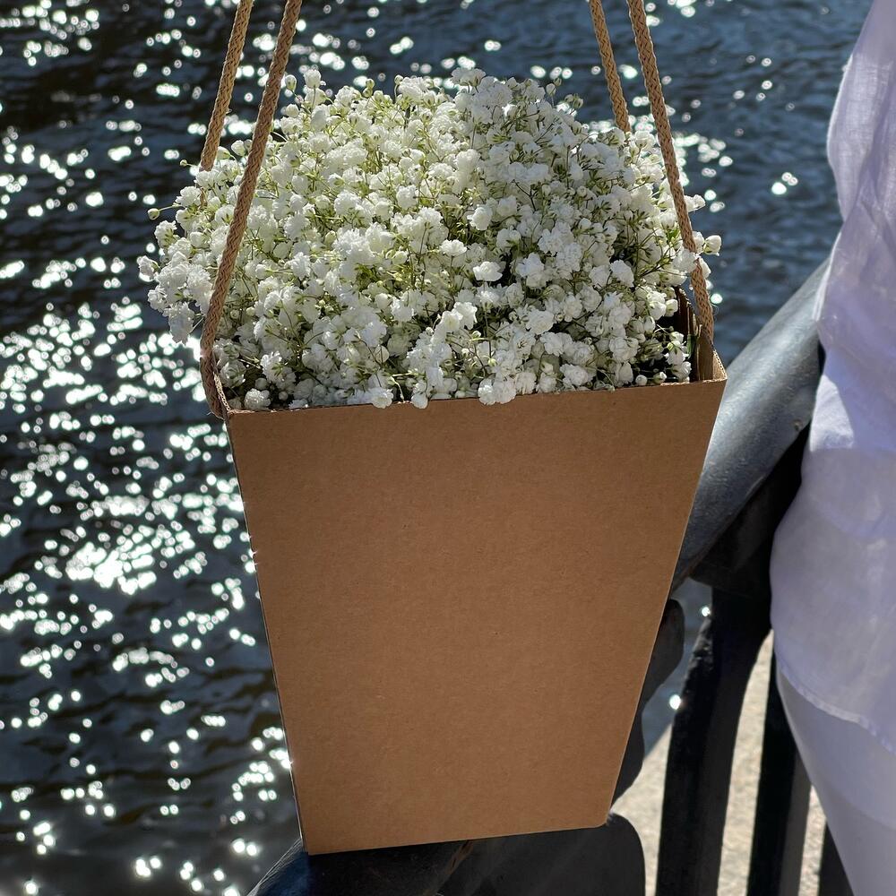 “Сиреневый туман” – композиция из гипсофилы в шляпной коробке