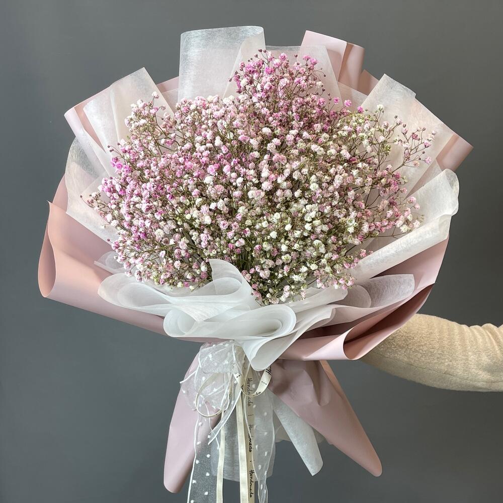 Гипсофила – 5 шт.Лента – 2 шт.Упаковка дизайнерская – 2 шт.