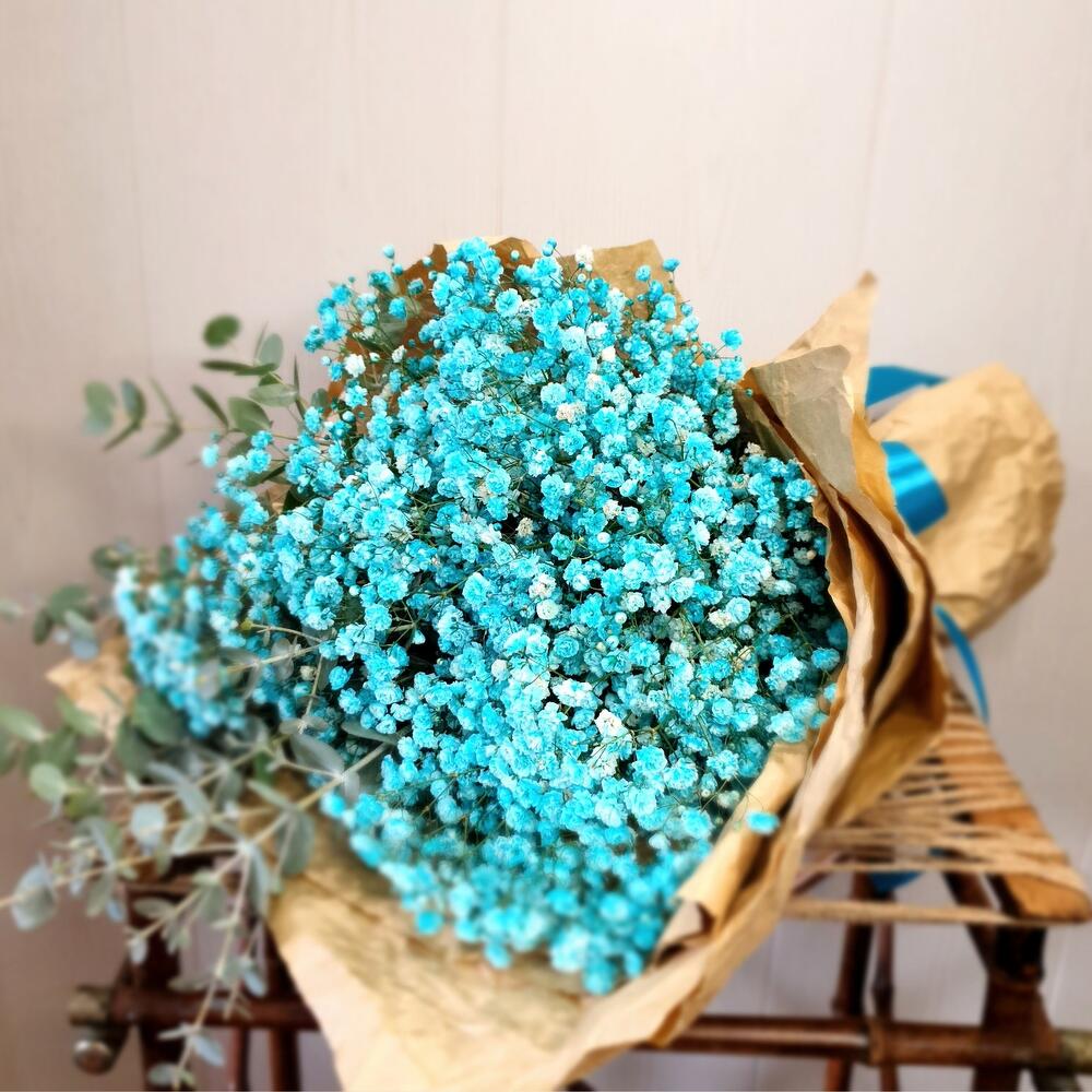 Гипсофила – 11 шт.Эвкалипт – 5 шт.Лента атласная – 1 шт.Открыточка с вашими пожеланиями – 1 шт.любовь флориста (бесплатно) – 1 шт.крафт жатый упаковка – 1 шт.