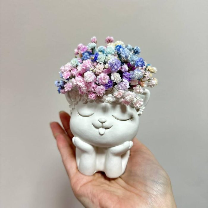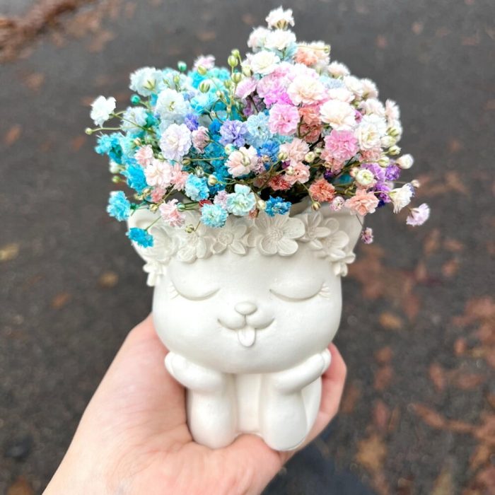 Кашпо из гипса с цветной гипсофилой
