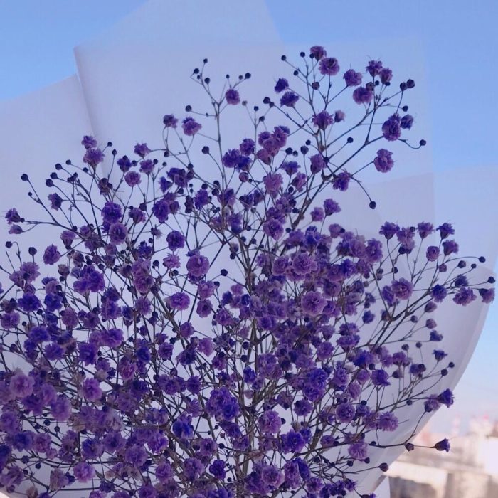 Лента атласная – 1 шт.Упаковка дизайнерская – 1 шт.Гипсофила фиолетовая – 1 шт.
