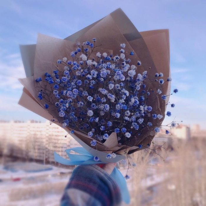 Мини букет из голубой гипсофилы