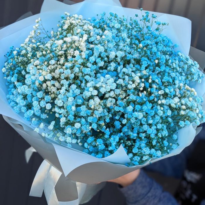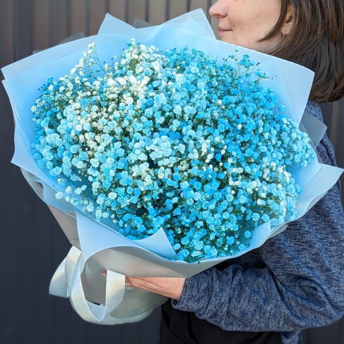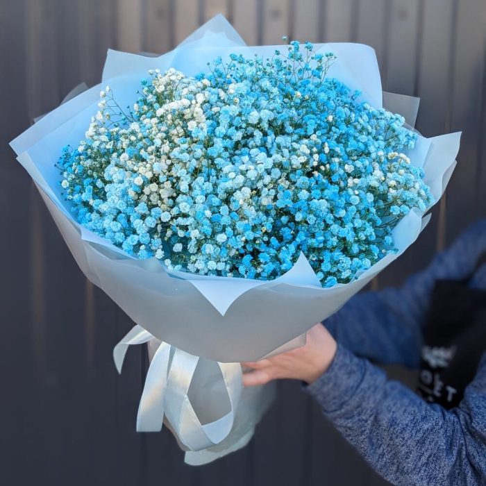 Монобукет из голубой гипсофилы