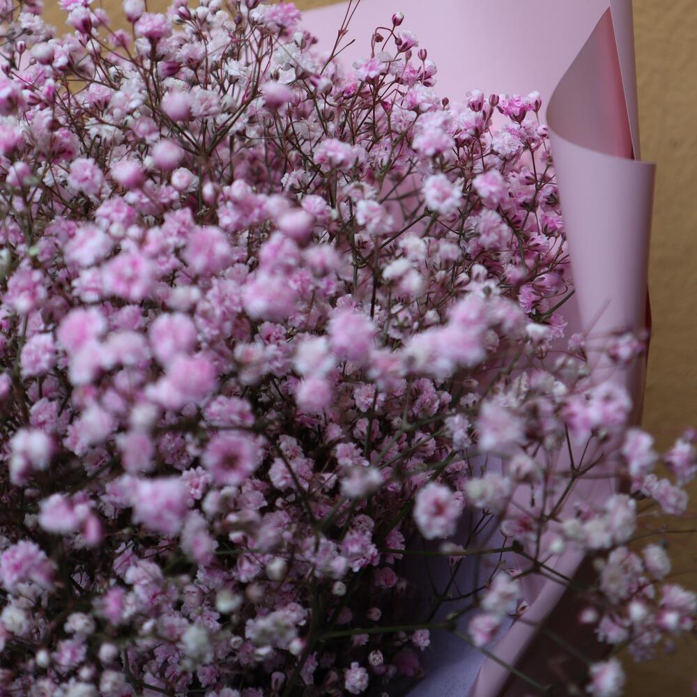 Прекрасный стойкий букет выполненный в корейском стиле,что придаёт ему необычайный вид. За счет пушистости гипсофилы,букет получается объемным.