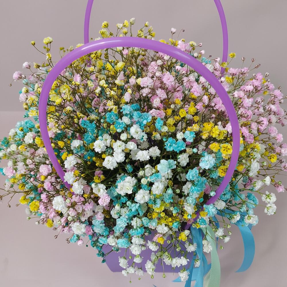 Шикарный букет из 25 веточек цветной гипсофилы диаметром 70 см
