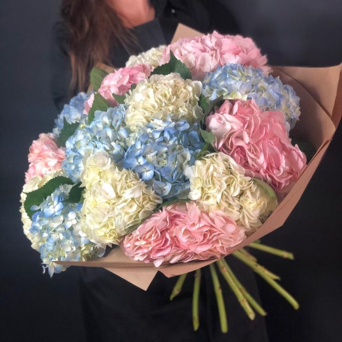 Большой букет из 15 гортензий