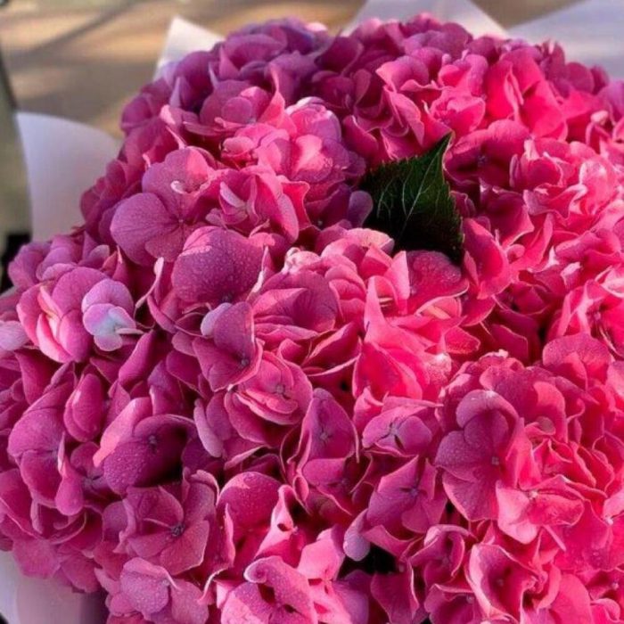 Гортензия розовая – 9 шт.Упаковка дизайнерская – 1 шт.Лента атласная – 2 шт.Открыточка с вашими пожеланиями – 1 шт.хорошее настроение – 100 шт.инструкция по уходу за цветами – 1 шт.коробка переноска – 1 шт.Кризал – 1 шт.