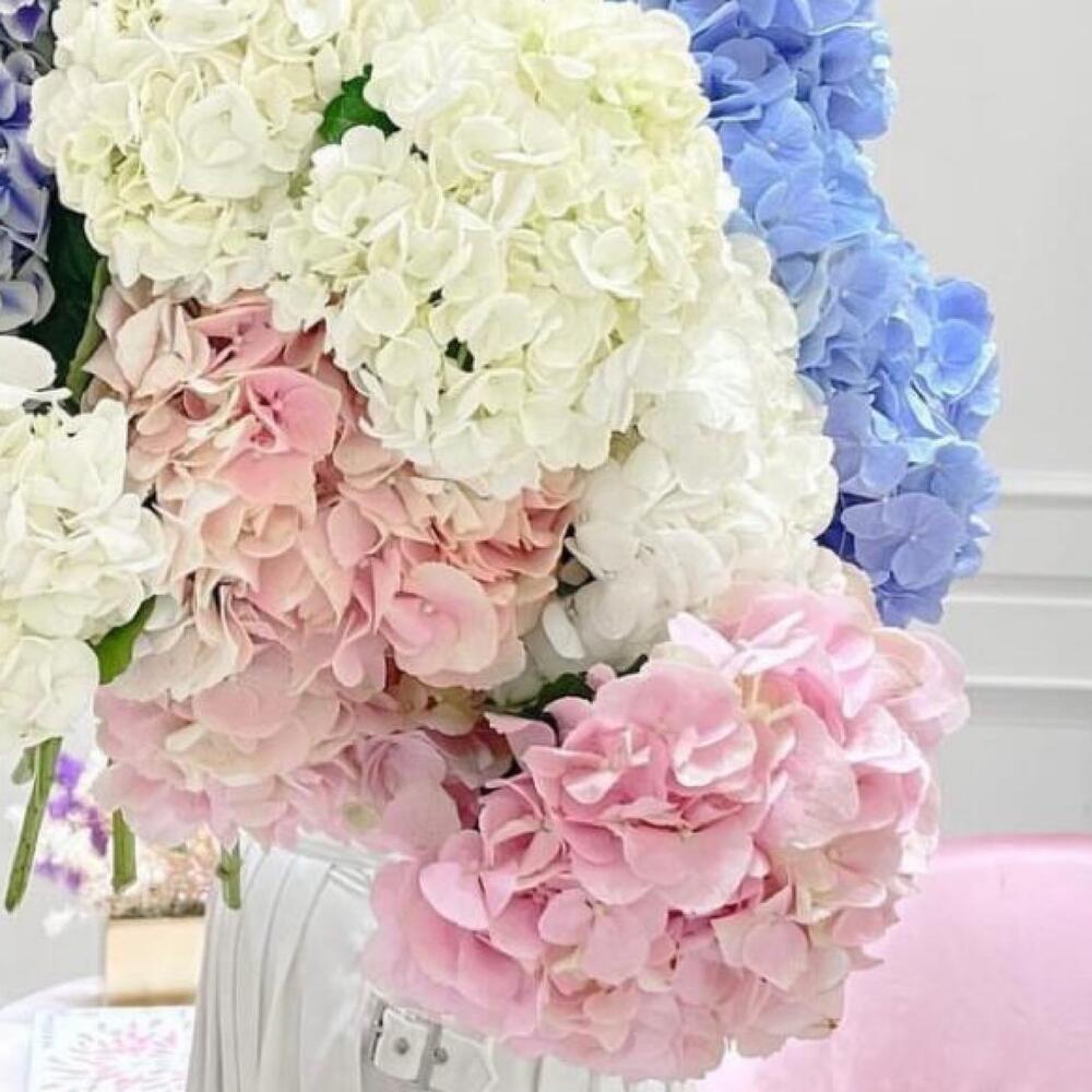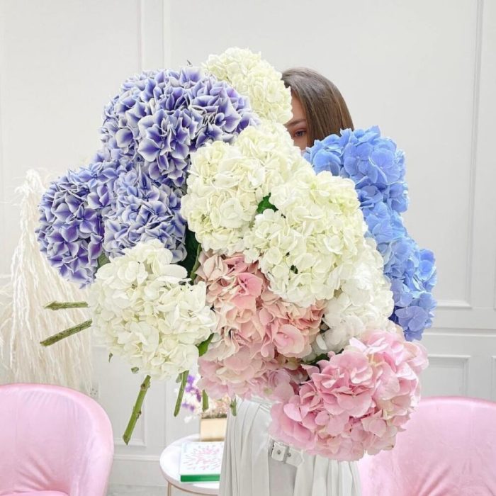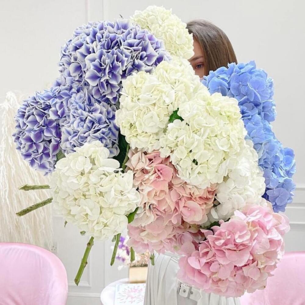 Букет из гортензий и гипсофилы «Сияющая улыбка»