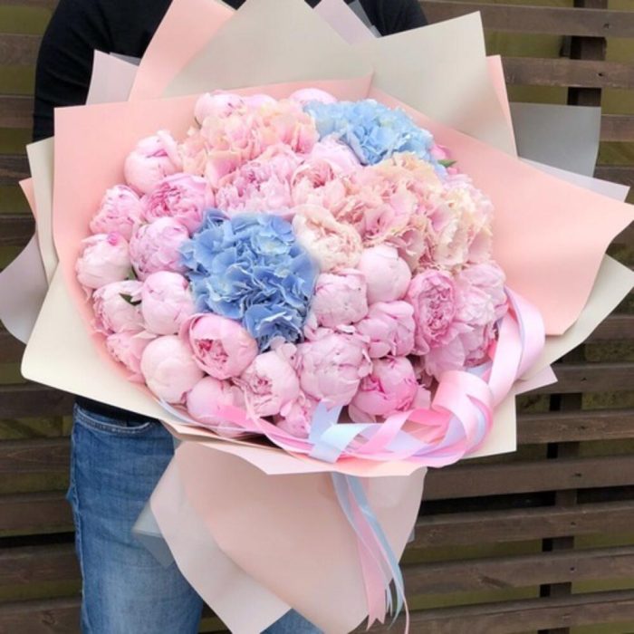 Гвоздики, Гортензии, Лизиантусы, Пионовидные розы, Розы