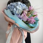 Альстромерия – 1 шт.Гортензия – 1 шт.Пион – 5 шт.Пленка – 6 шт.Колоски пшеницы – 2 шт.Стифа – 2 шт.