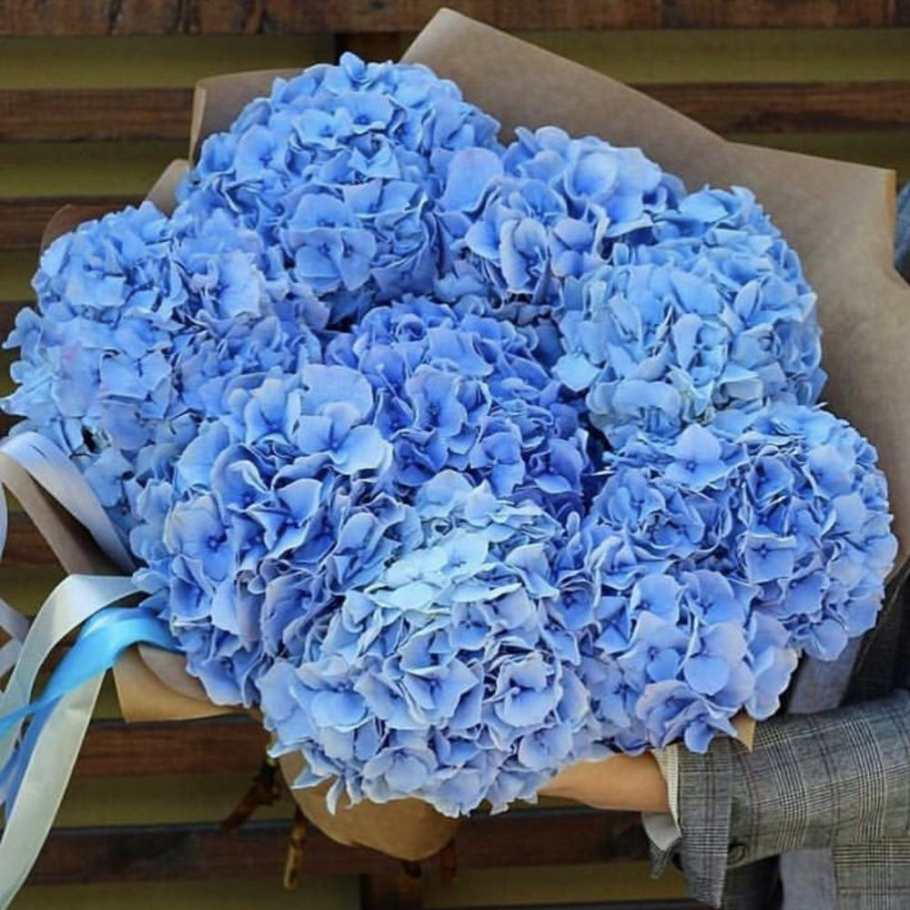 Гортензия синяя – 9 шт.Упаковка – 1 шт.Лента атласная – 1 шт.