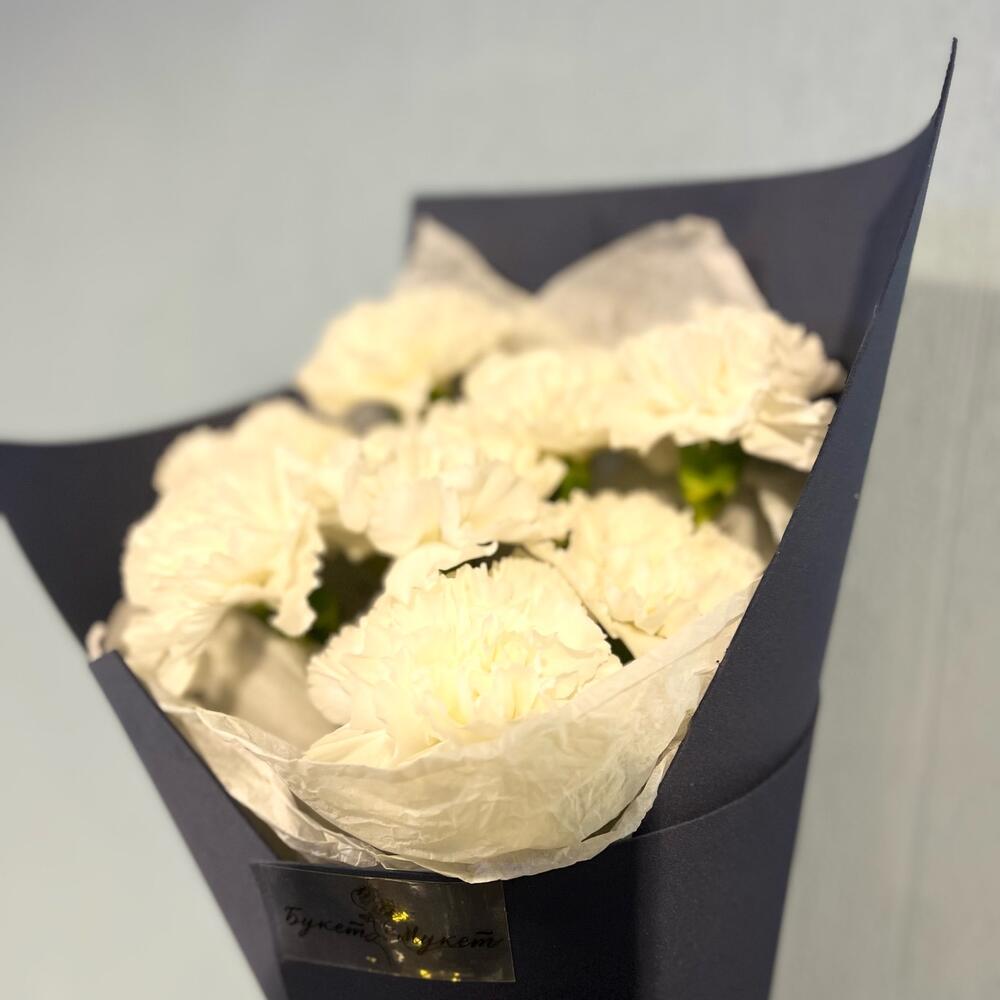 Диантус белый – 9 шт.Тишью – 1 шт.Фоамиран (упаковка) – 1 шт.Лента атласная – 1 шт.