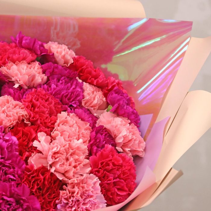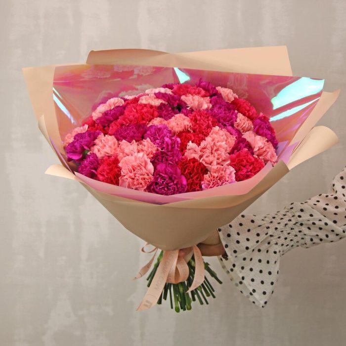 Букет из 51 диантуса (гвоздики) микс в стильной упаковке