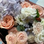 Красивый букет с гортензией и пионовидными розами