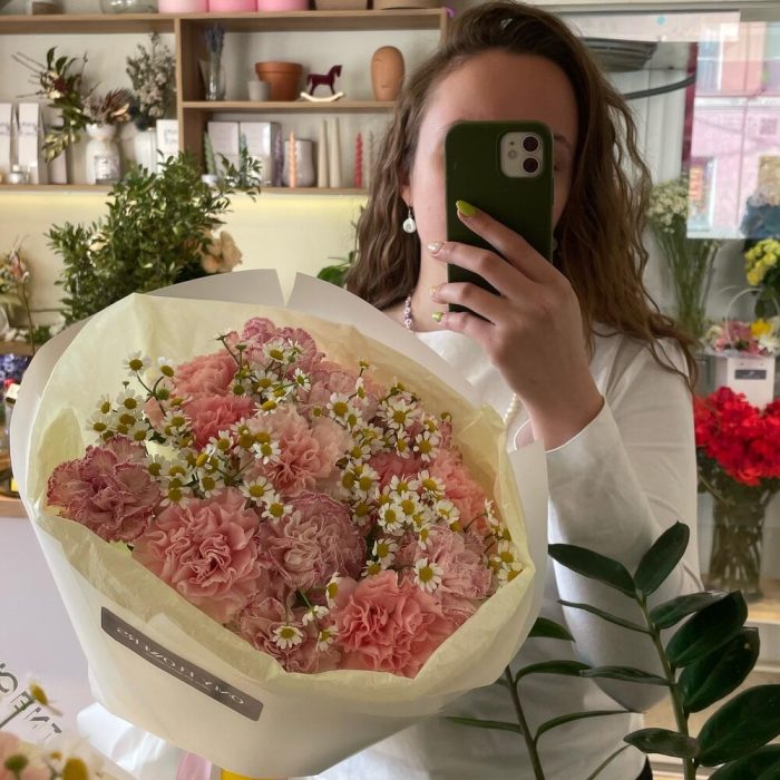 Диантус – 15 шт.Матрикария – 4 шт.Упаковка дизайнерская – 2 шт.