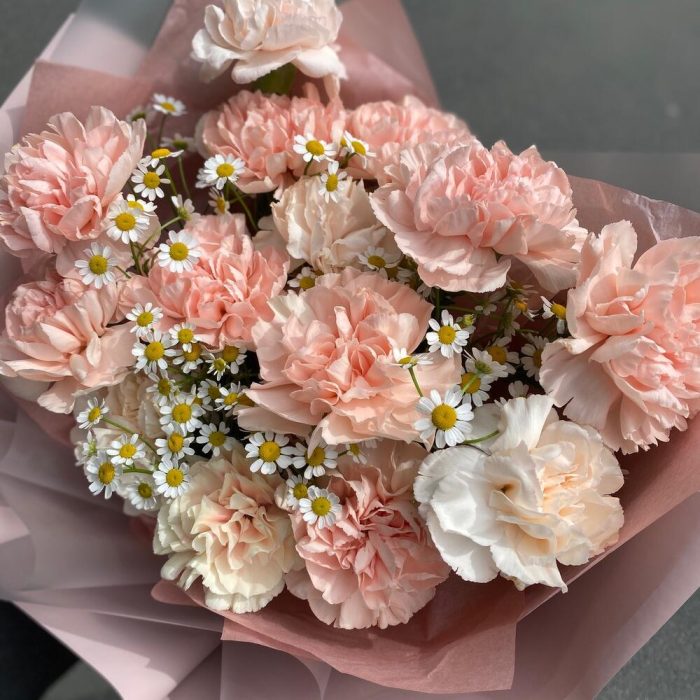 Она любит букеты, которые долго стоят(ромашки+гвоздика)