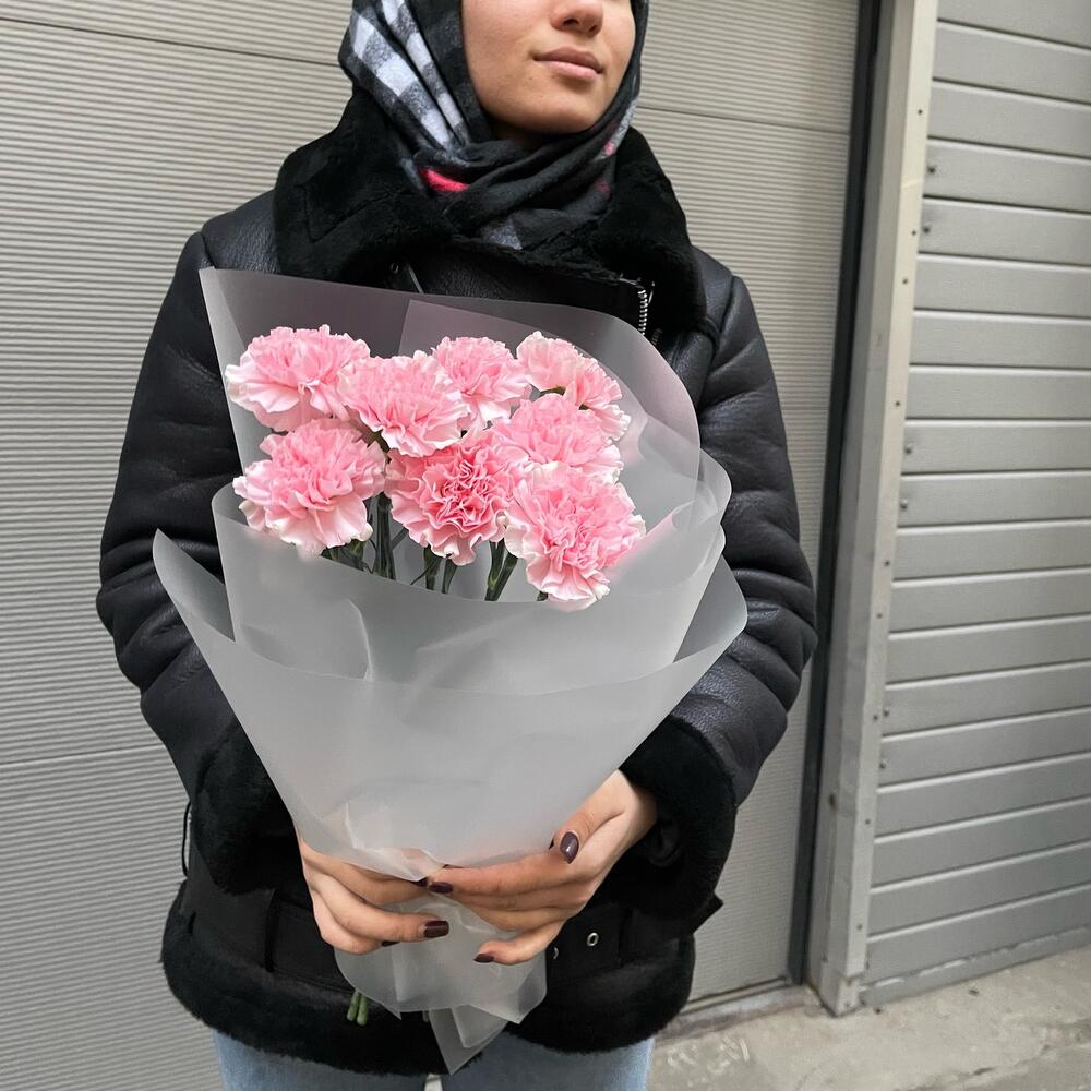 Стойкий букет из розовых диантусов в стильной упаковке