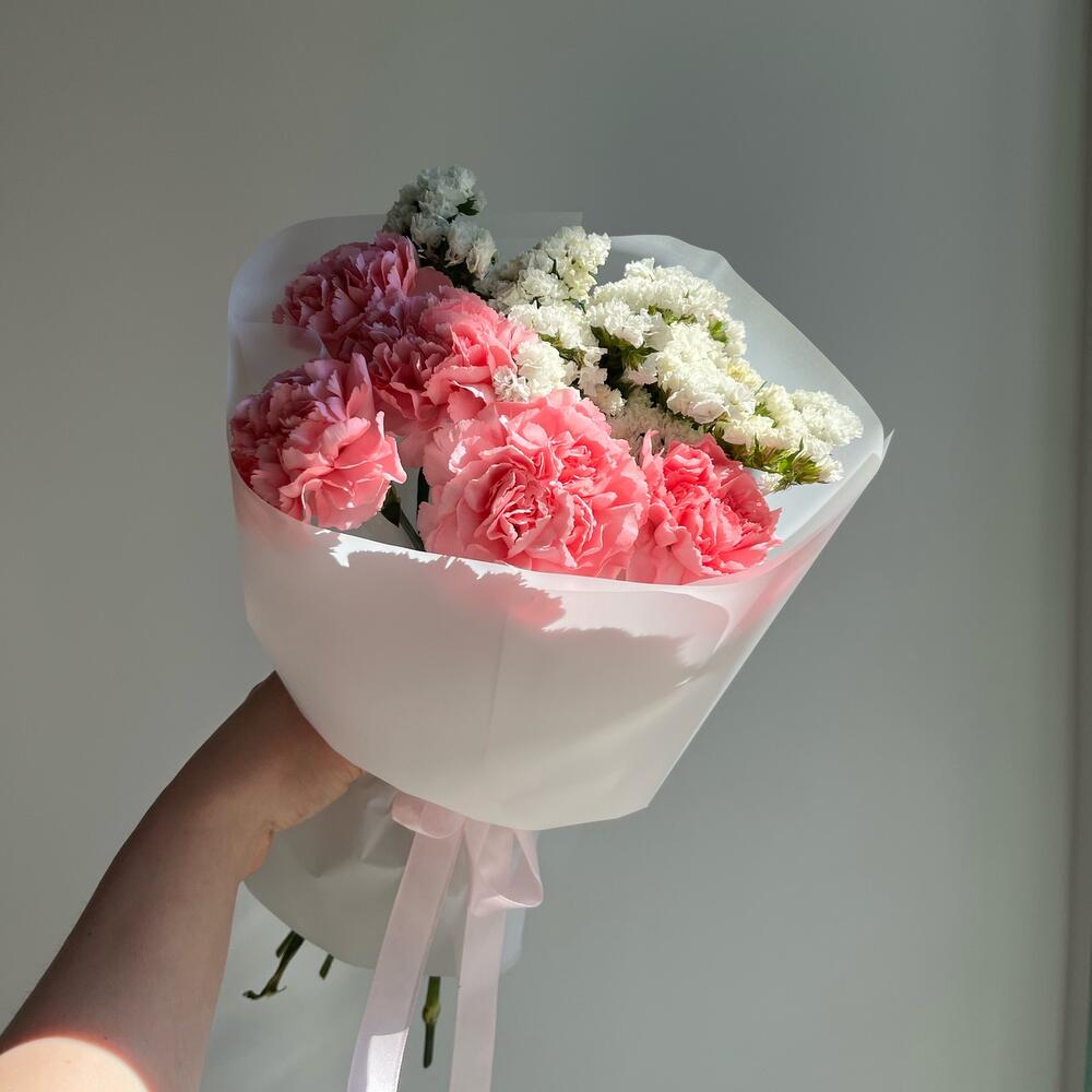 Нарядный букет сортовых гвоздик (цвет на выбор на момент заказа)