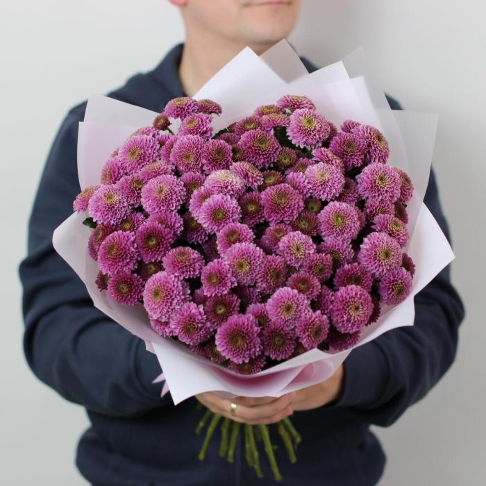 Хризантема Сантини – 21 шт.Лента атласная – 1 шт.Упаковка дизайнерская – 4 шт.