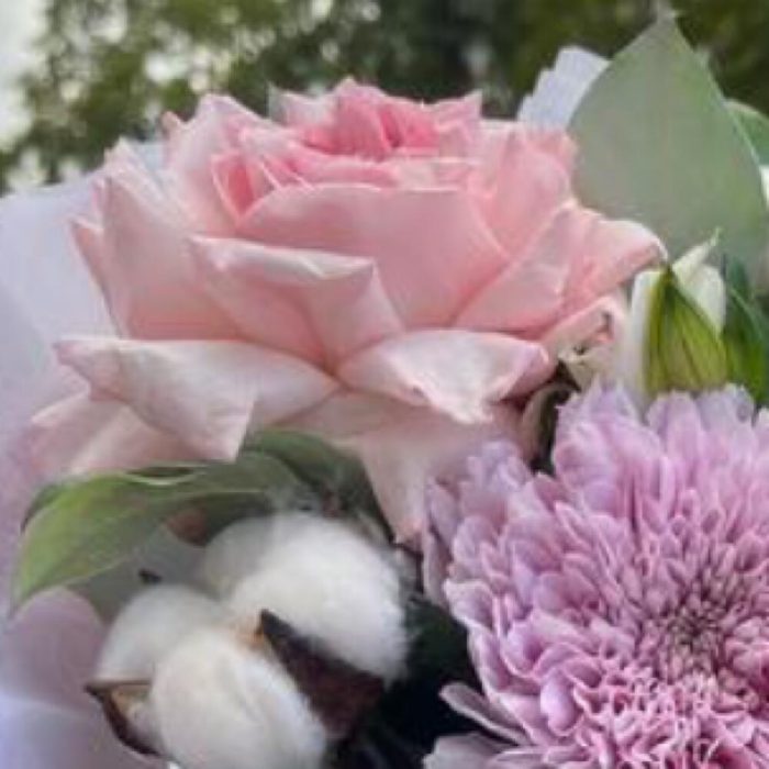 «Лавандовое созвездие» Букет из розы, гвоздики, статица и хлопка