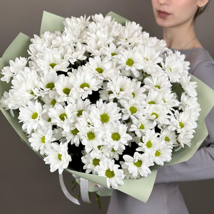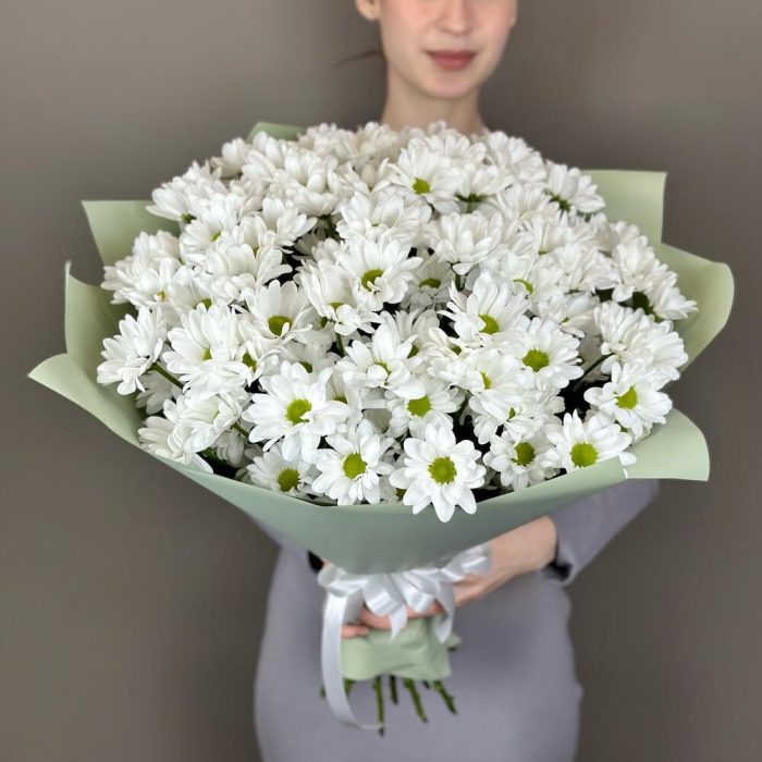 Хризантема кустовая – 15 шт.Лента атласная – 1 шт.Дизайнерская упаковка – 2 шт.