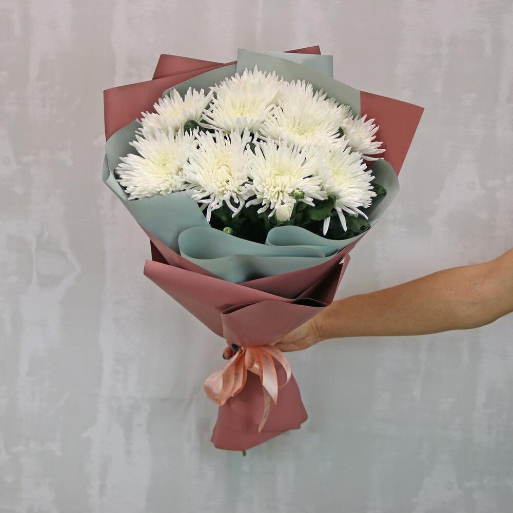Хризантема Анастасия – 11 шт.Пленка – 2 шт.Лента – 1 шт.