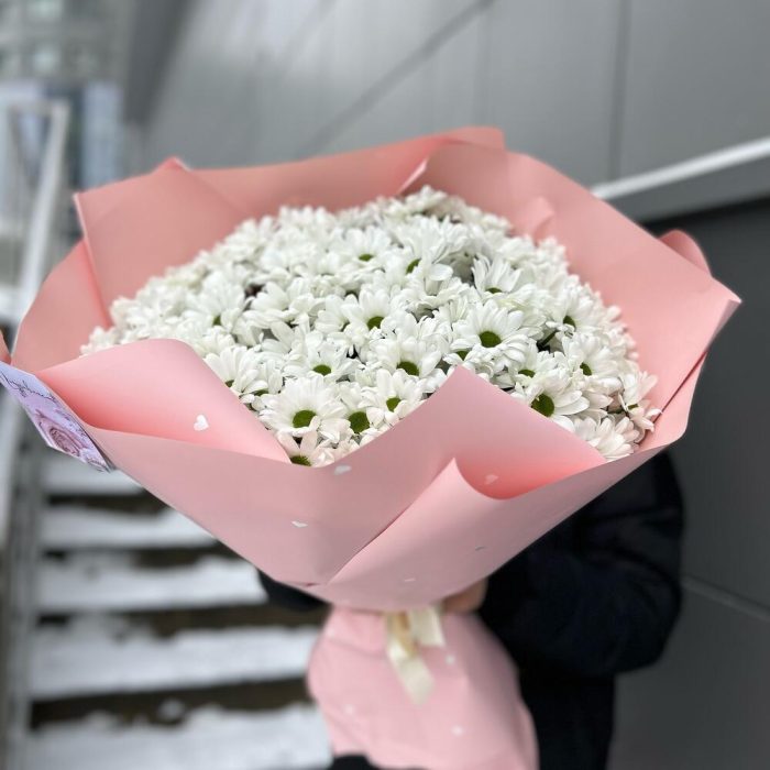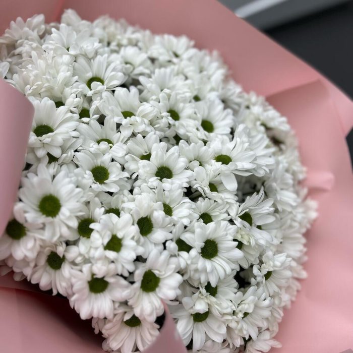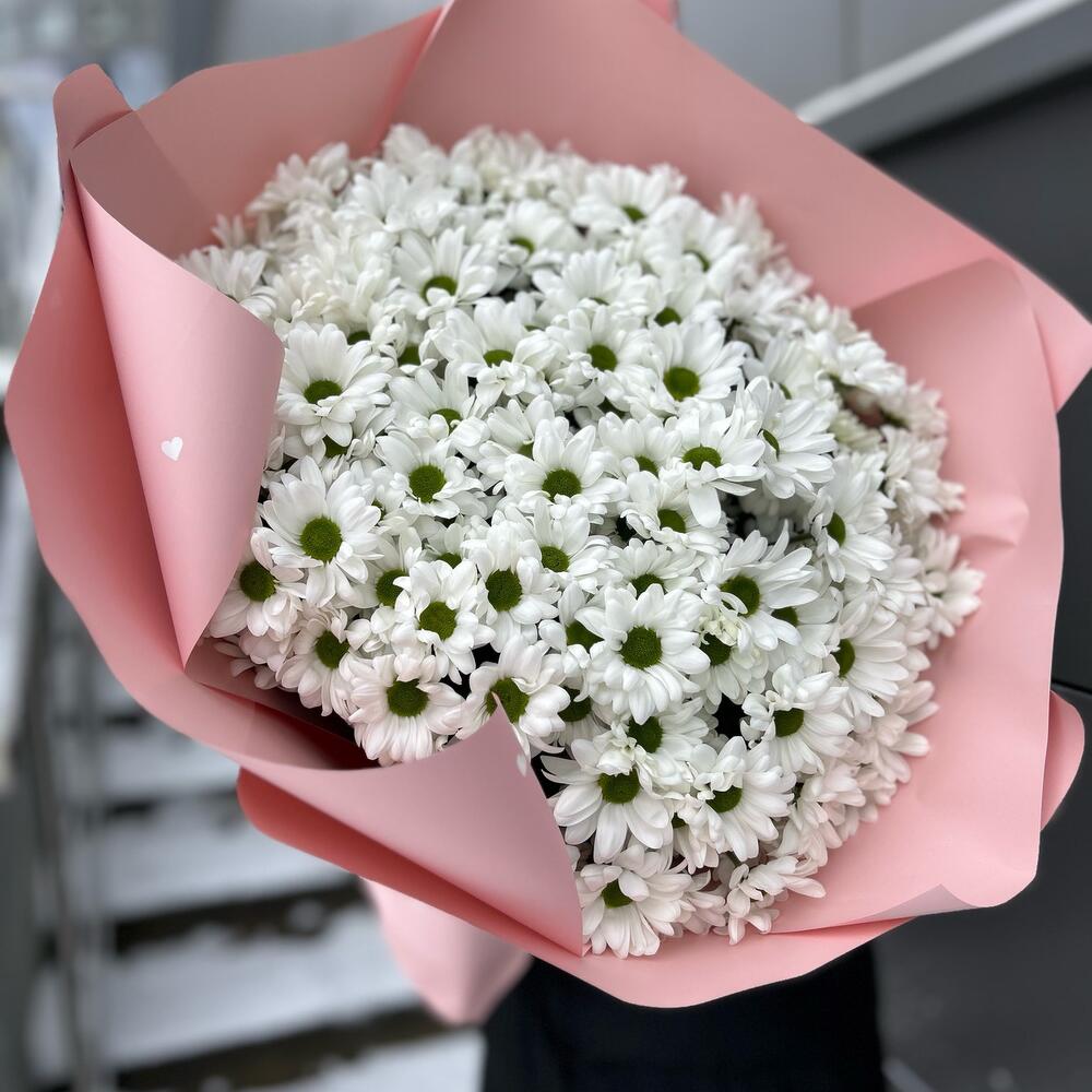 Букет из 11 веток ромашковых хризантем. Количество ромашек в букете может достигать 151 штуки.