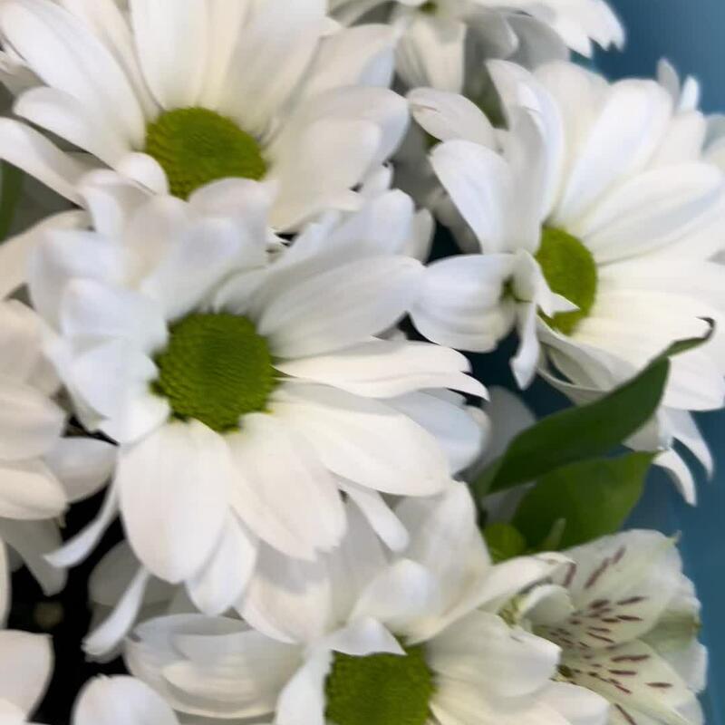 Альстромерия – 6 шт.Хризантема кустовая – 5 шт.Лента атласная – 2 шт.Упаковка дизайнерская – 2 шт.
