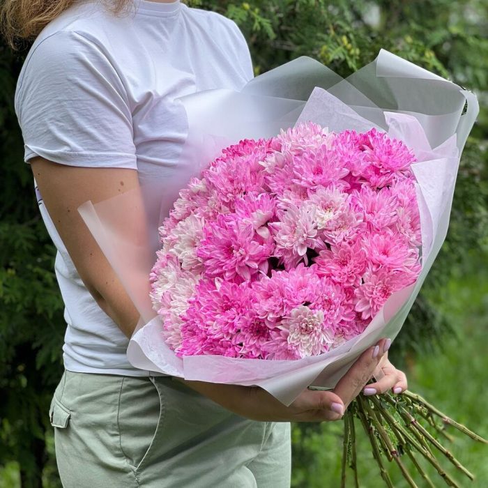 Тишью – 2 шт.Пленка матовая – 2 шт.Хризантема крашеная – 15 шт.