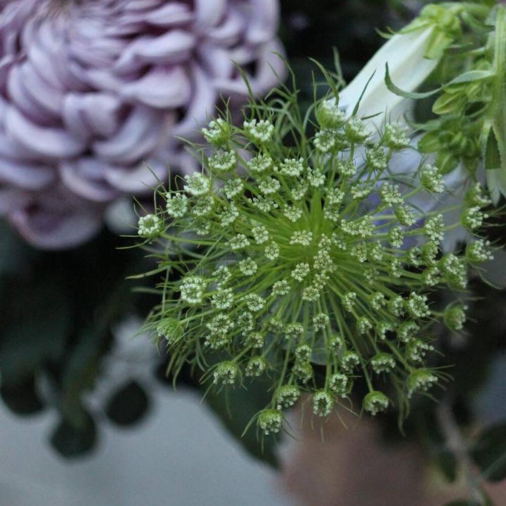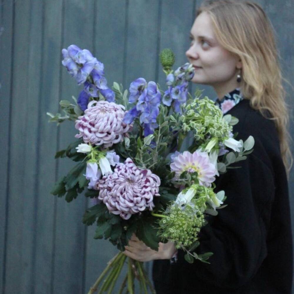 Хризантема – 2 шт.прострел трава – 3 шт.трава колдунов – 1 шт.Зонтик – 2 шт.Георгина – 1 шт.Питтоспорум – 3 шт.Колокольчик – 3 шт.Лента – 1 шт.
