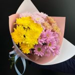 Хризантема голландия – 5 шт. Открыточка с вашими пожеланиями – 1 шт. Дизайнерская упаковка – 2 шт. инструкция по уходу за цветами – 1 шт.