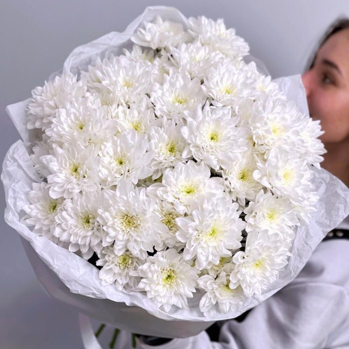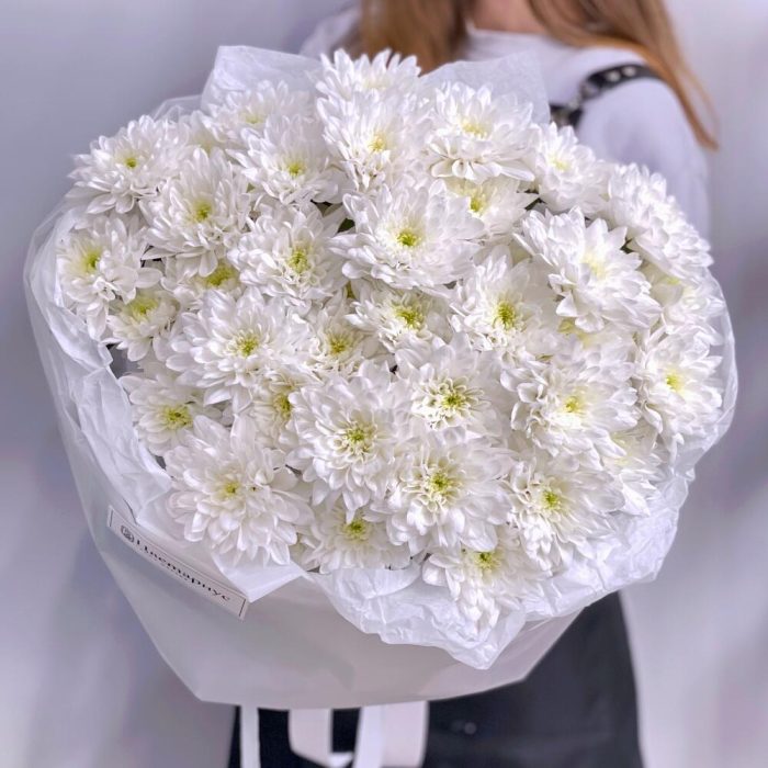 Стильный и очень стойкий монобукет из белых кустовых хризантем.Пушистое облако снова в тренде! Букет непременно порадует ту, которую Вы любите!