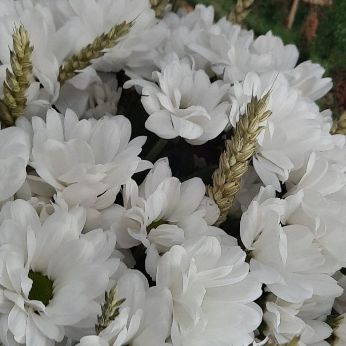 Хризантема кустовая – 7 шт.Колоски пшеницы – 16 шт.Упаковка дизайнерская – 1 шт.