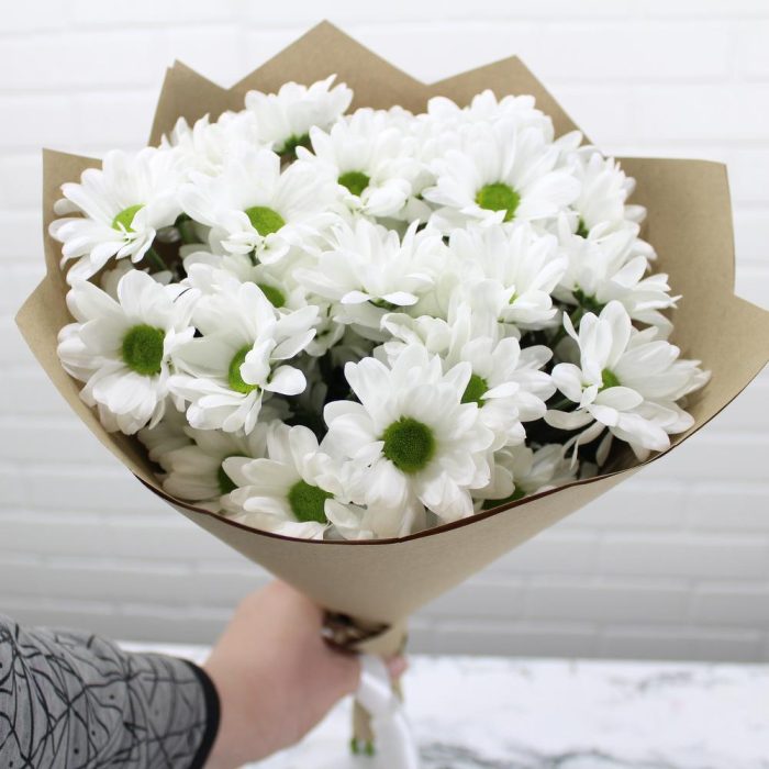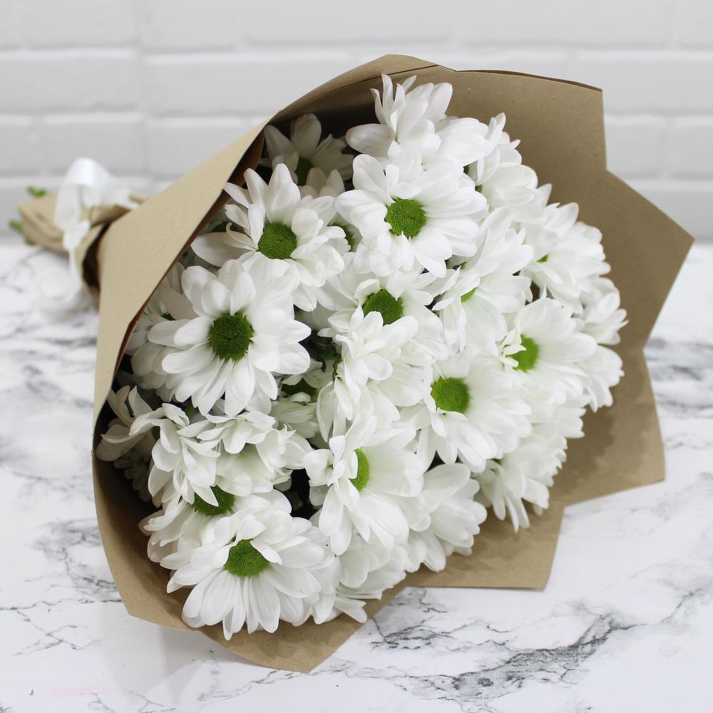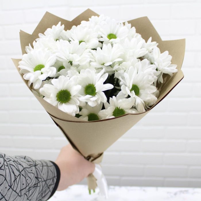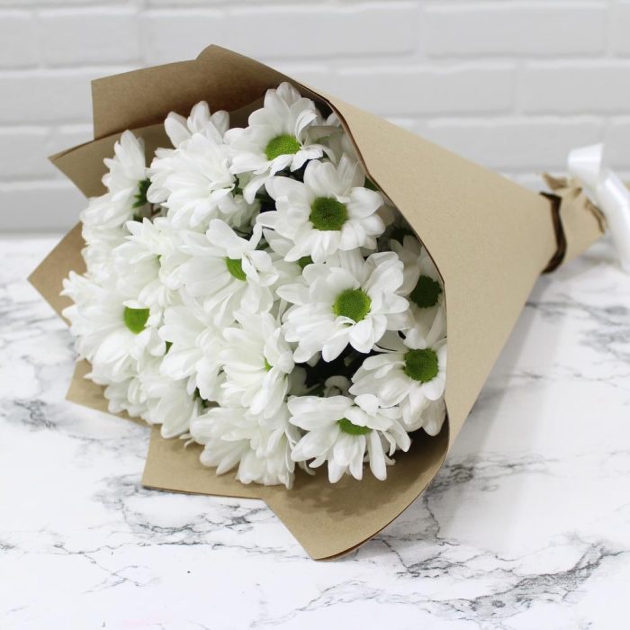 Кустовая хризантема – 5 шт. Упаковка крафт – 1 шт.