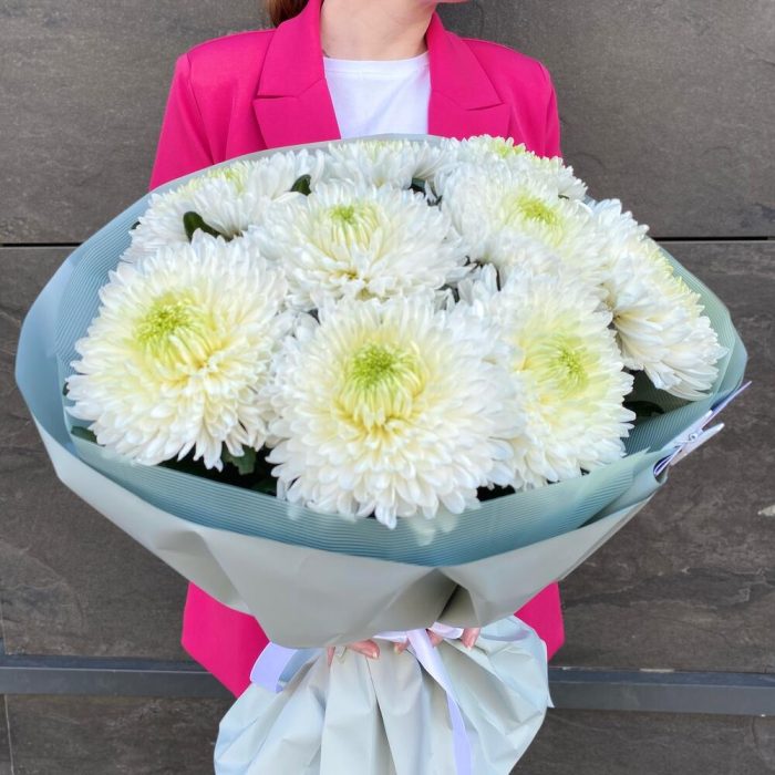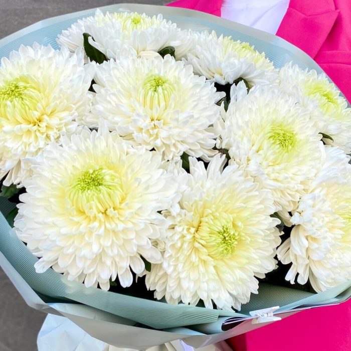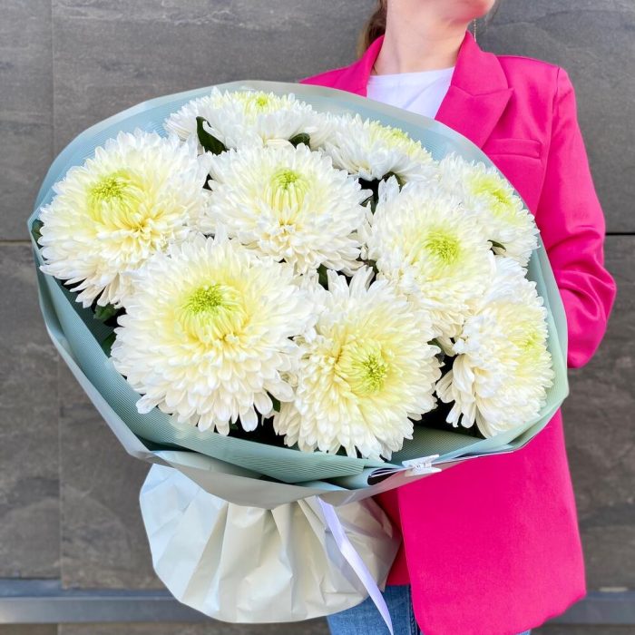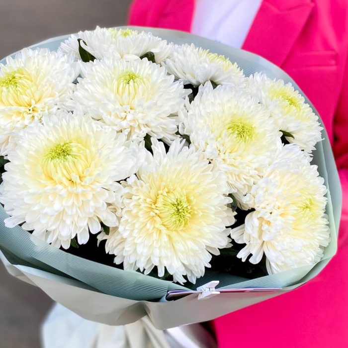 Монобукет с 9 белыми хризантемами