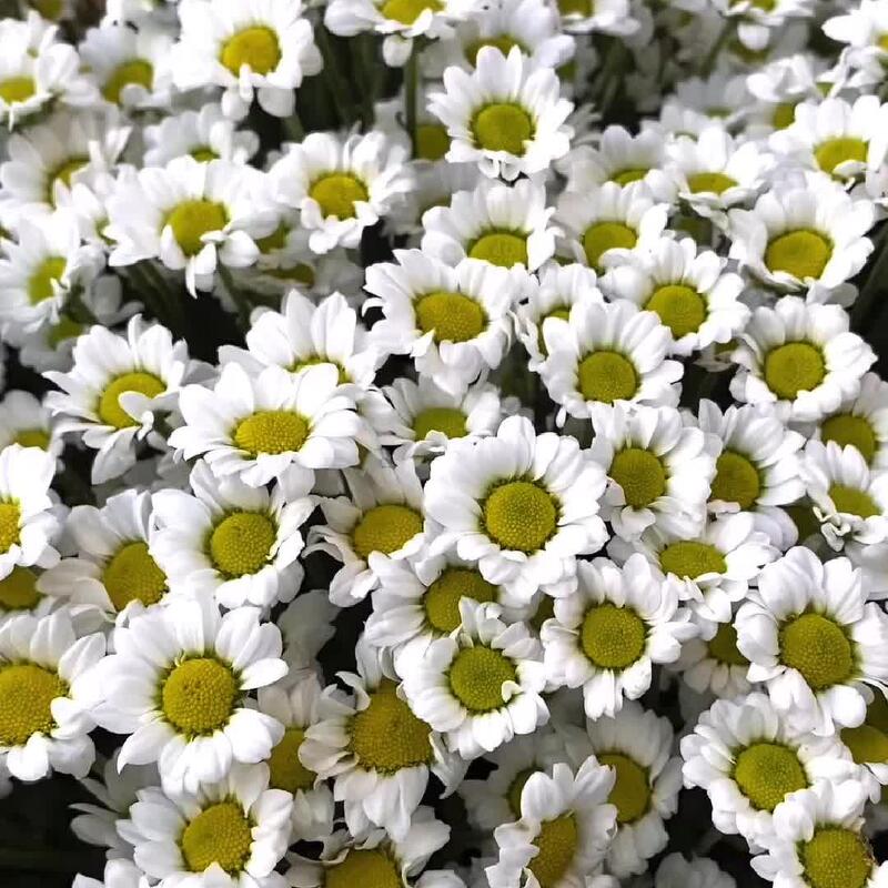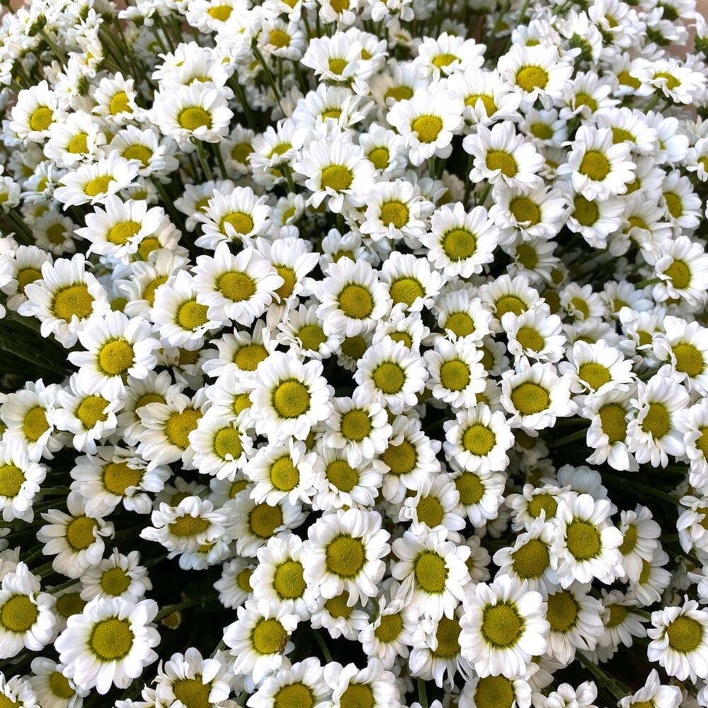Пышный букет белых кустовых хризантем