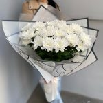 Хризантема кустовая – 5 шт.Лента атласная – 2 шт.Упаковка дизайнерская – 5 шт.
