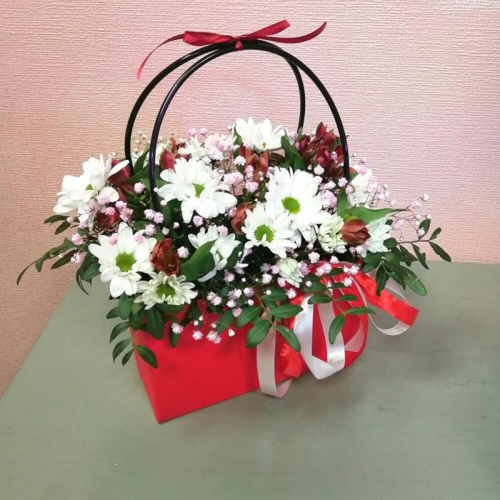 Цветы в сумочке в нежных тонах